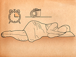 lie on the right side with knees bent